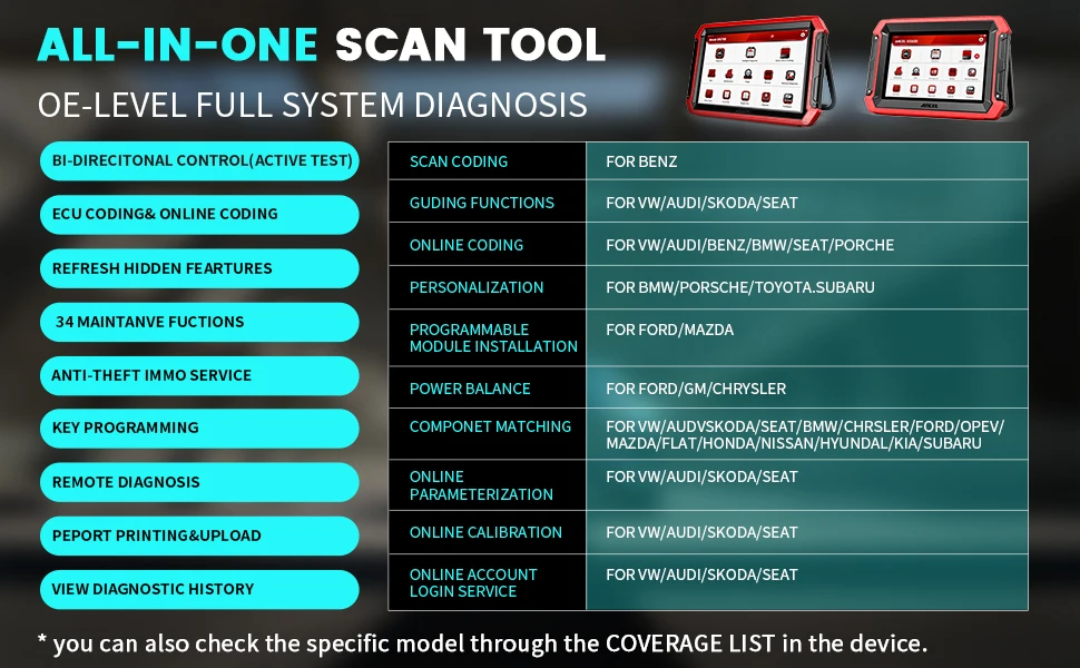 Этот диагностический планшет поддерживаетКодирование ЭБУФункция на большом количестве, в том числе для Benz, для Ford и многое другое. Он также поддерживает быструю диагностику с помощью одной кнопки vin-сканирования.