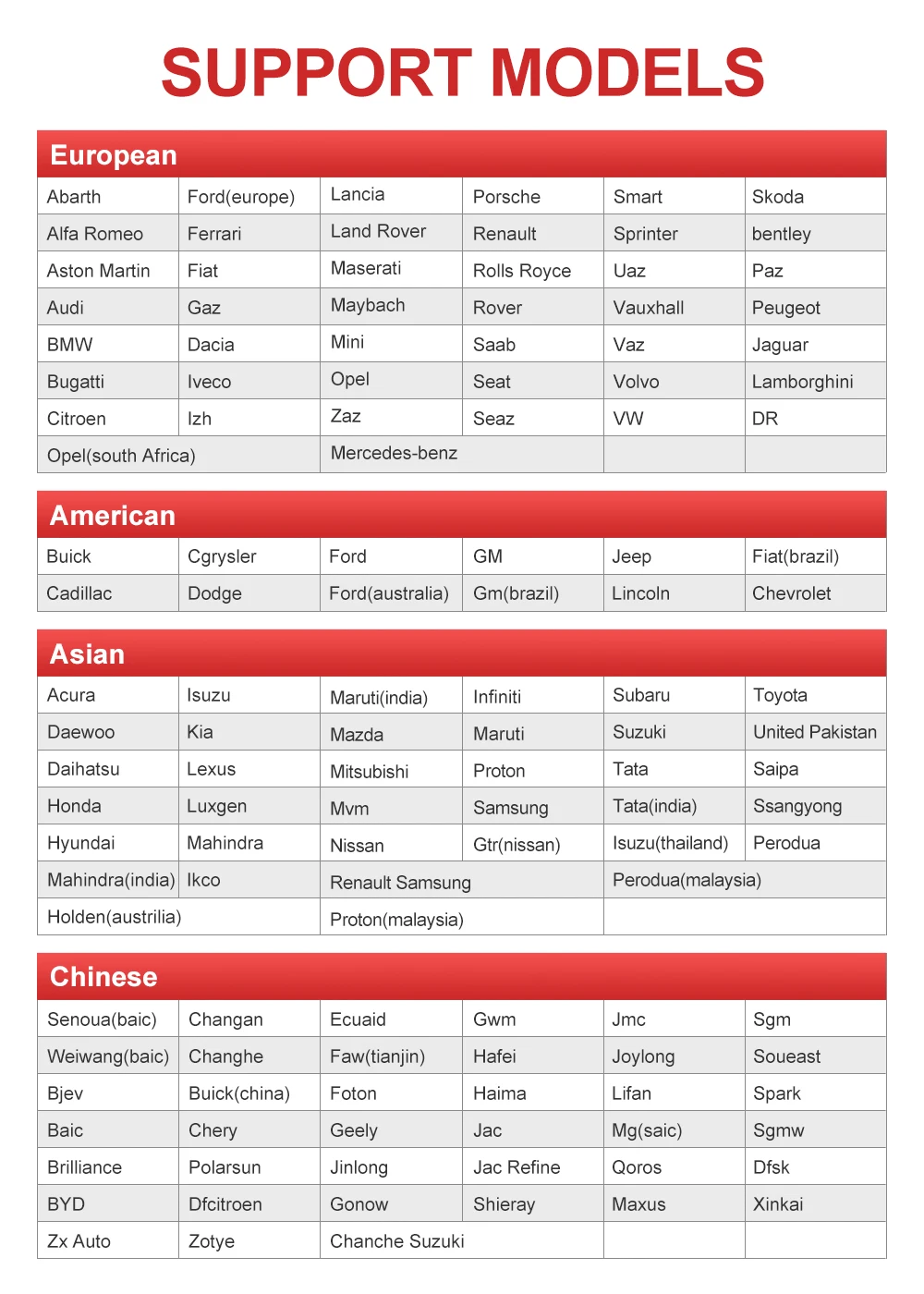 ANCEL DS600 поддерживает 10000 + моделей автомобилей из Америки, Европы, Азии