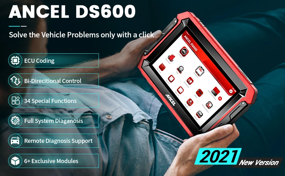 2021 Обновление новых эксклюзивных функций: ANCEL DS600 программируемая платформа обновляет больше функций OE-Level, таких как онлайн-кодирование, направляющие функции, противоугонная IMMO сервис, AutoAuth для FCA SGW, функции вспышки, ключевые программирование, баланс мощности, соответствие компонентов, модификация для BMW, онлайн персонализация, настройка и замена для Benz, Сверхмощные модули для дизельных грузовиков 24 В, калибровка онлайн и т. д.