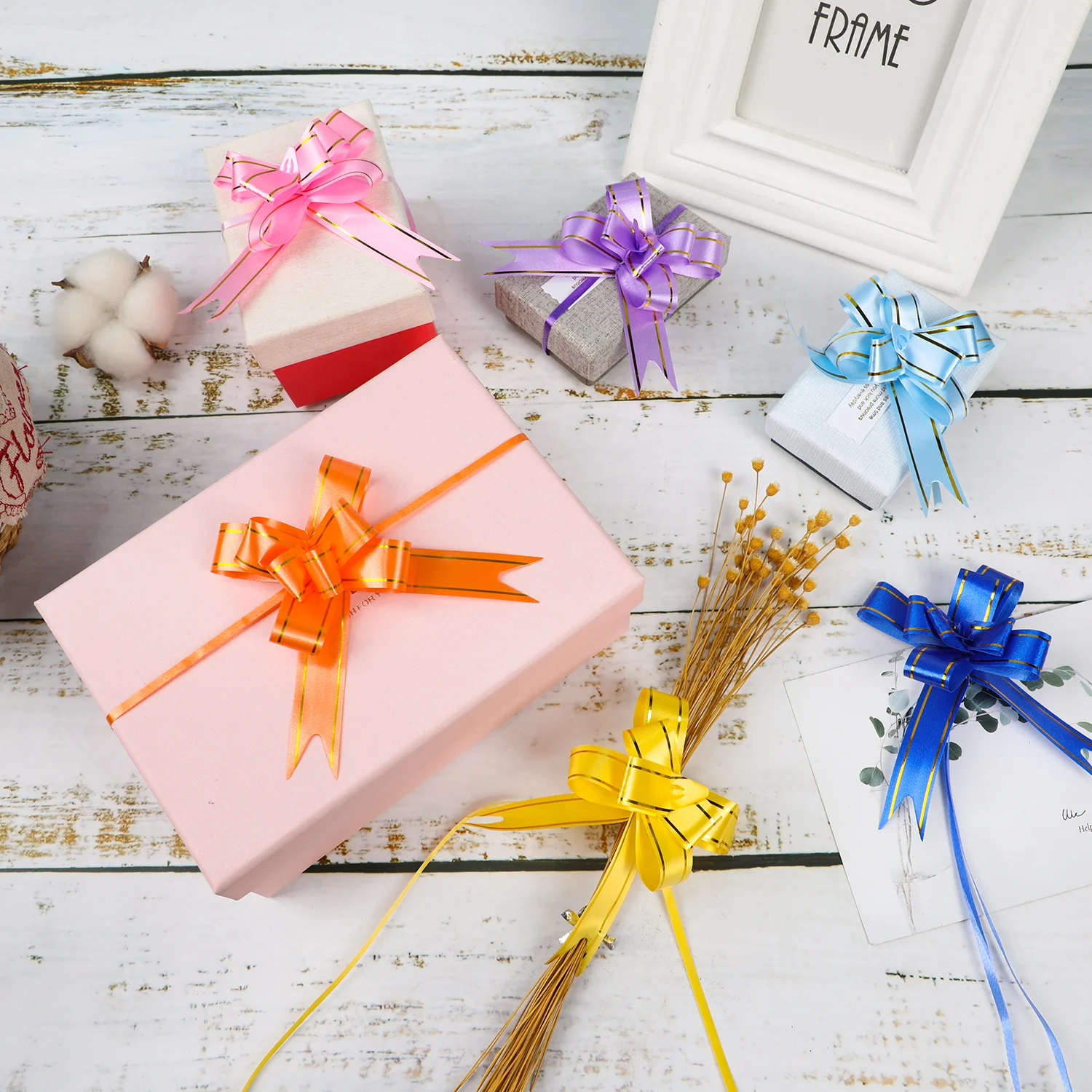 Простота в использовании: Наши тянущиеся банты легко настроить. Для изготовления банта требуется всего несколько секунд. Каждый бант имеет достаточно длинную ленту для легкого завязывания на различные предметы. (Вы можете следовать инструкциям на фотографии сборки.)