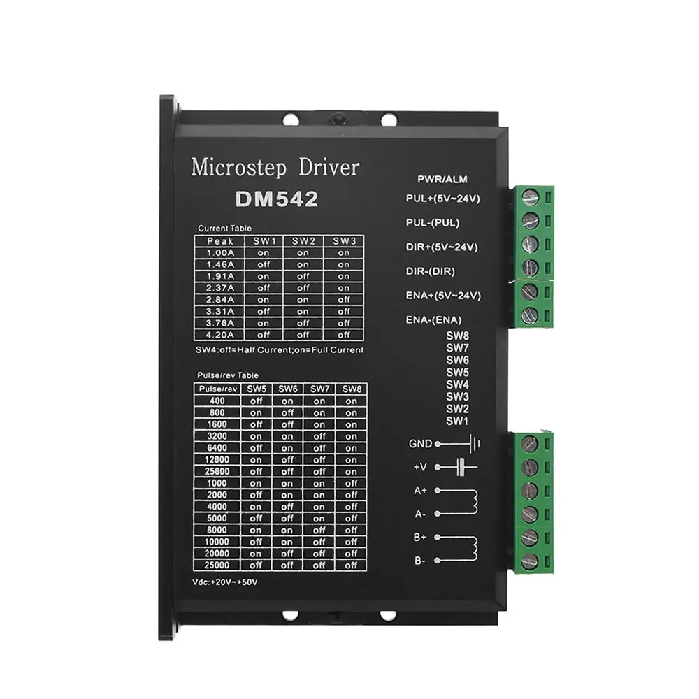 DM542 является универсальным полностью цифровым шаговым диском на основе DSP с усовершенствованным алгоритмом управления. DM542-это новое поколение цифровых шаговых контроллеров. Он приносит уникальный уровень гладкости системы, обеспечивая оптимальный крутящий момент и устраняет нестабильность среднего диапазона. Технология автоматической настройки двигателя и параметров обеспечивает оптимальные отклики с различными двигателями и простоту в использовании. Приводные двигатели могут работать с гораздо меньшим шумом, более низким нагревом, плавным движением, чем большинство приводов на рынках. Его уникальные особенности делают DM542 идеальным решением для приложений, которые требуют низкой скорости гладкости.
