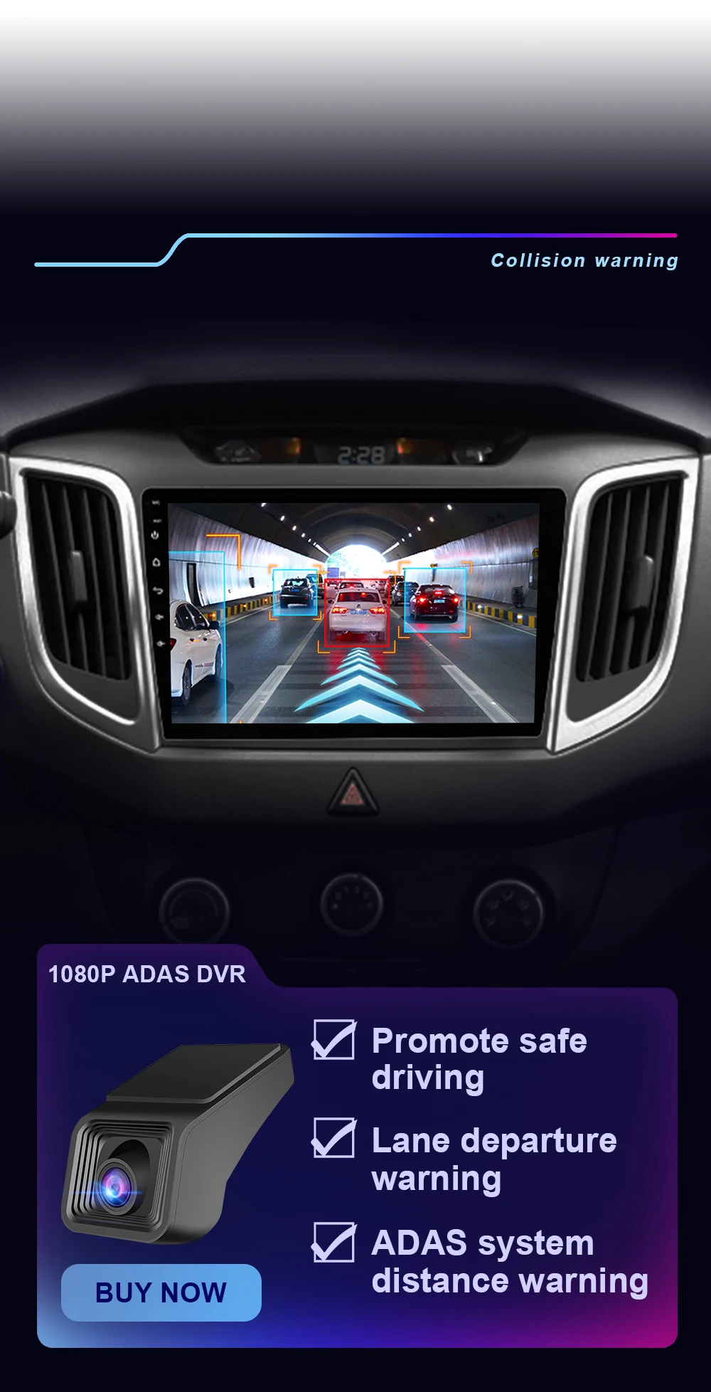 Камера ADAS DVR способствует безопасному вождению. Система ADAS, предупреждающая о расстоянии, записывает пейзаж по дороге, которую вы едете. XV6 Pro имеет небольшую функцию окна