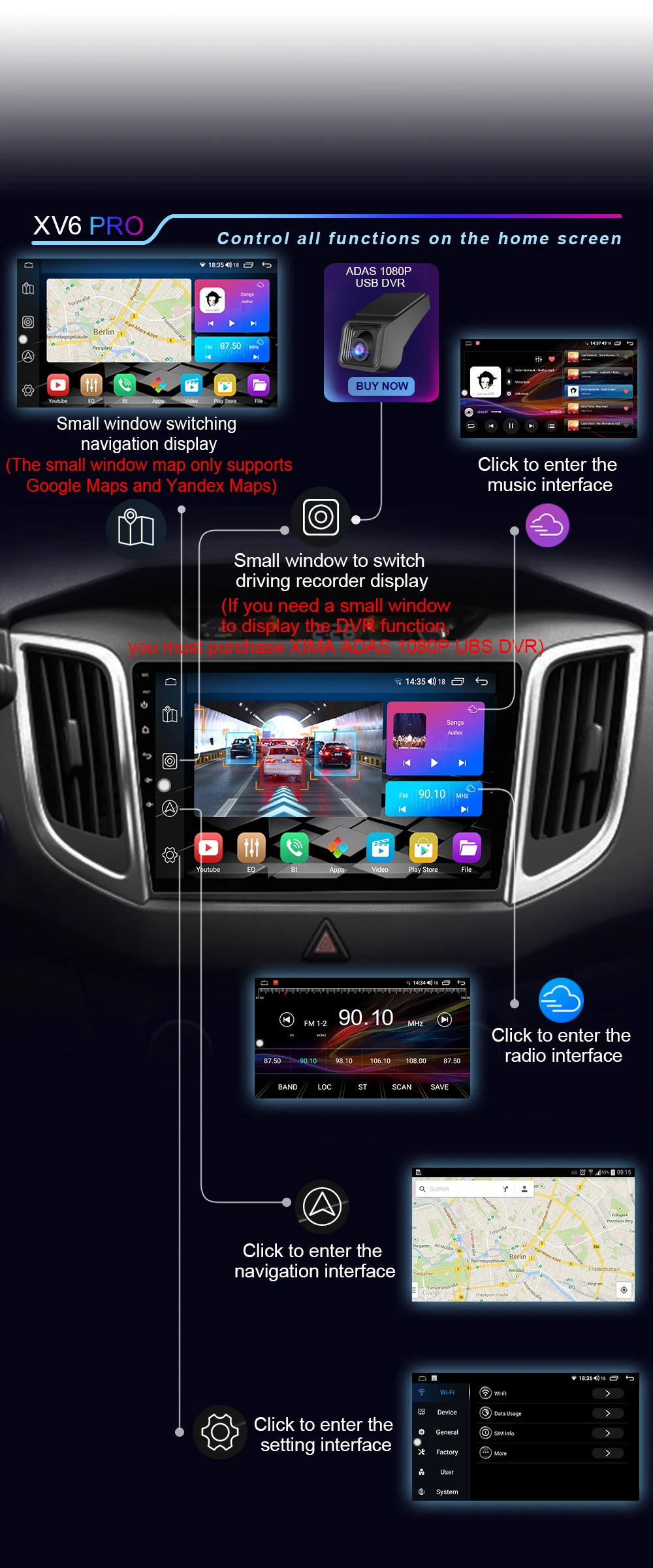 XIMA XV6 Pro встроенный CarPlay + Android Auto поставляется с функцией carplay, не нужно приобретать дополнительные аксессуары.