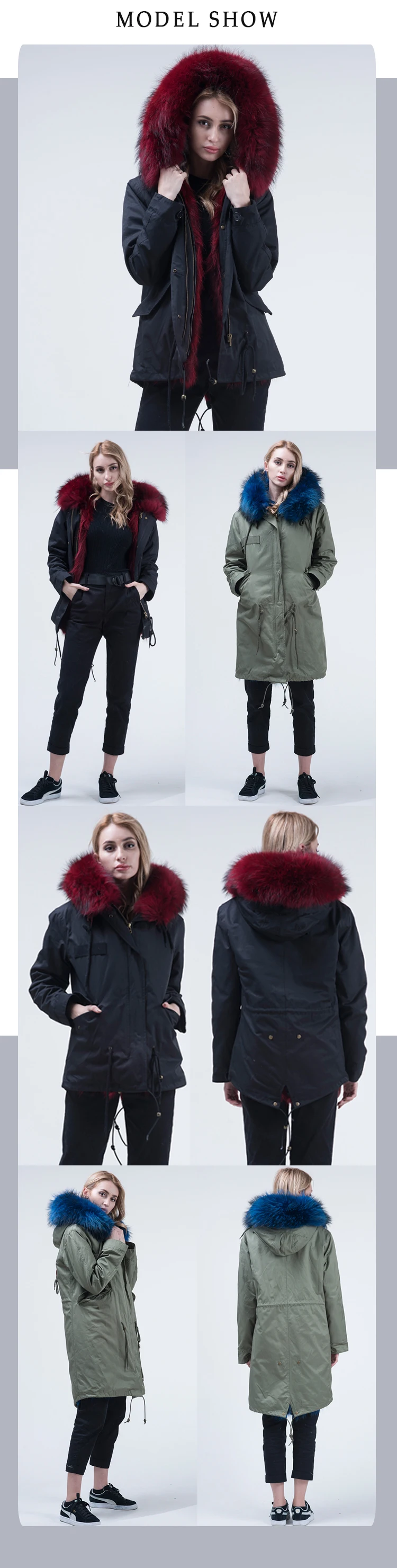 Материал меха: воротник из натурального меха енота + Высококачественная подкладка из искусственного меха (все они отстегиваются)