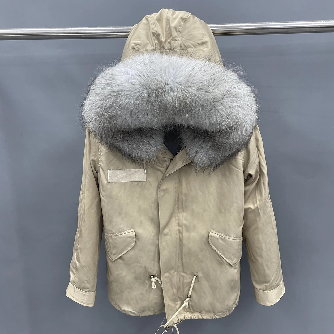 Женская парка, куртка с натуральным мехом на капюшоне цвета хаки, Повседневная Толстая теплая парка с подкладкой из искусственного меха, короткая зимняя куртка для лыжного размера плюс