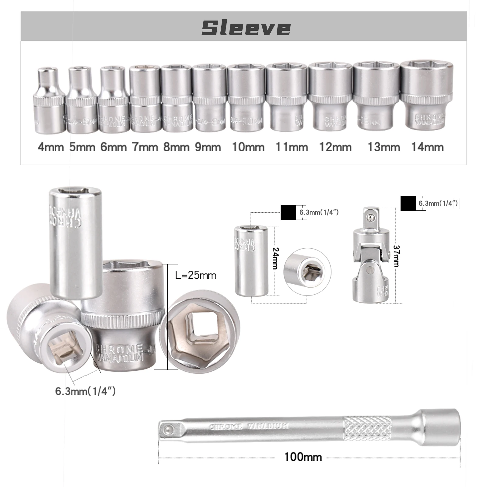 Шестигранная розетка: 4 мм, 5 мм, 6 мм, 7 мм, 8 мм, 9 мм, 10 мм, 11 мм, 12 мм, 13 мм, 14 мм