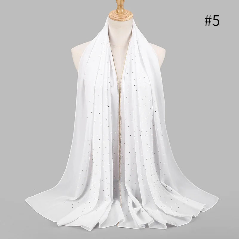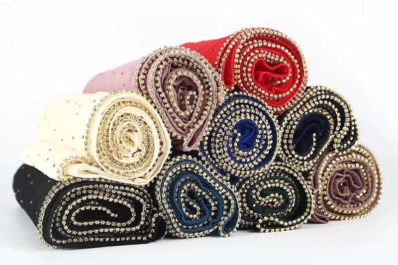Роскошный шифоновый шарф со стразами, хиджаб, Женские однотонные мягкие длинные мусульманские шарфы, мусульманский шарф, турецкий тюрбан, шаль, шарфы для головы