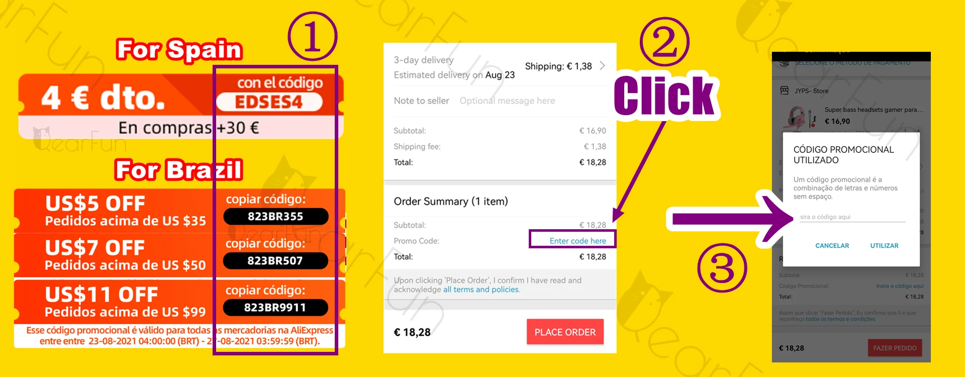 Для Испании и Бразилии, купите два наушников, Получите купон и используйте промо-код,