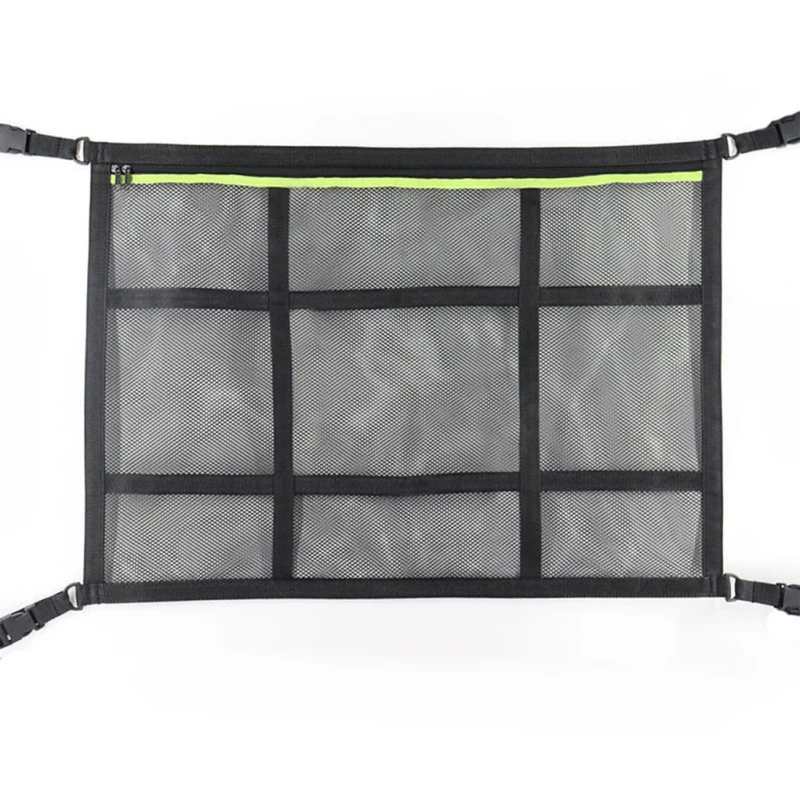Автомобильная сетка для хранения сумки позволяет зафиксировать ее на 4 ручках на крыше, с открыванием и закрытием молнии, которую легко установить.