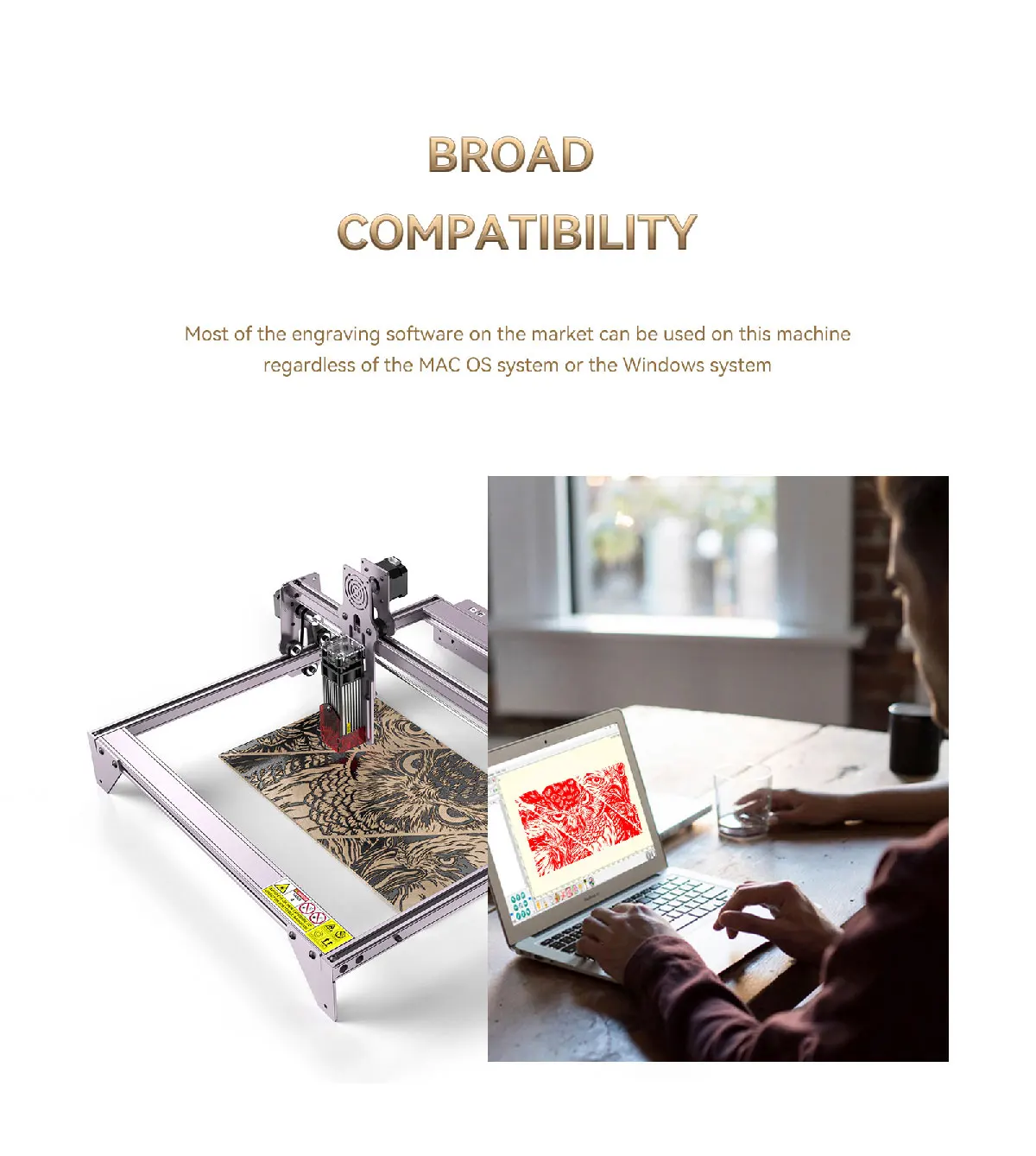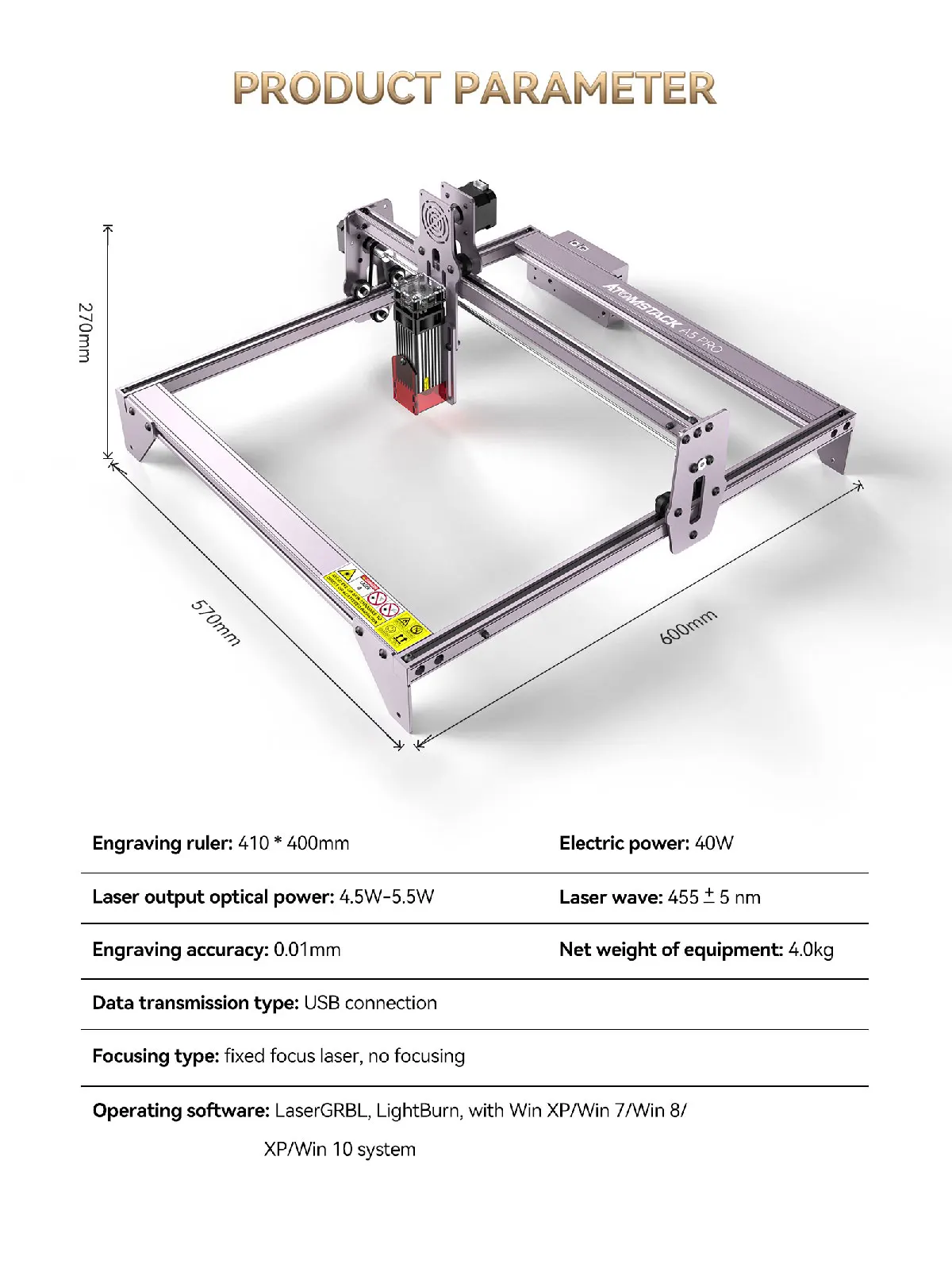 Улучшенный дизайн защиты глаз: Нет необходимости носить очки, фильтр УФ-светильник 97%, лазерная Защитная крышка Идеально защищает ваши глаза и предотвращает захват ваших питомцев лазерным прожектором. 410x400 мм интервал гравировки большой площади может удовлетворить ваши различные потребности гравировки.