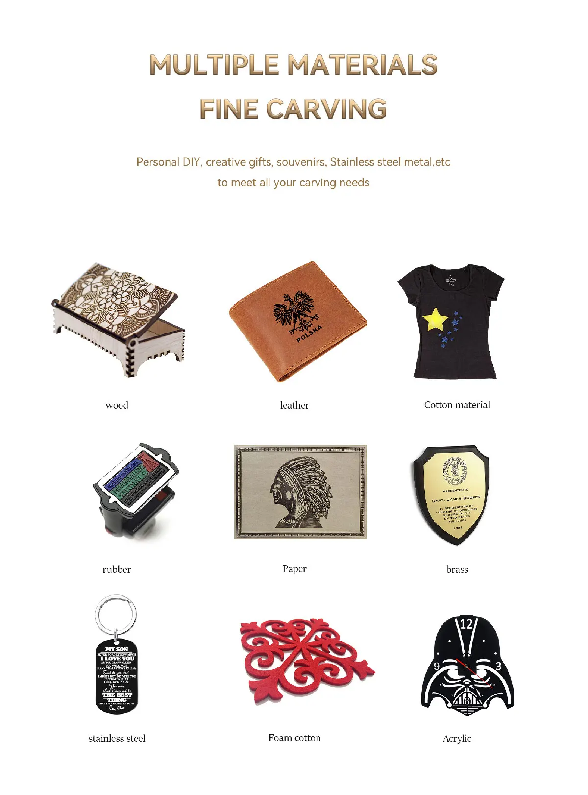Прочная и простая установка: полностью металлическая конструкция и простая в установке конструкция. Есть точные масштабные линии на оси X и оси Y для облегчения быстрого измерения длины. Лазер высокой плотности может легко отрезать 5 мм толстое дерево, может непосредственно гравировать гладкую нержавеющую сталь, керамику, бамбуковое дерево, кожу, пластик акрил, бумажный запас, булыжник. Полированный зеркальный металл сначала должен быть окрашен в черный цвет, его можно протереть после гравировки. Лазерный гравер не может отрезать металл