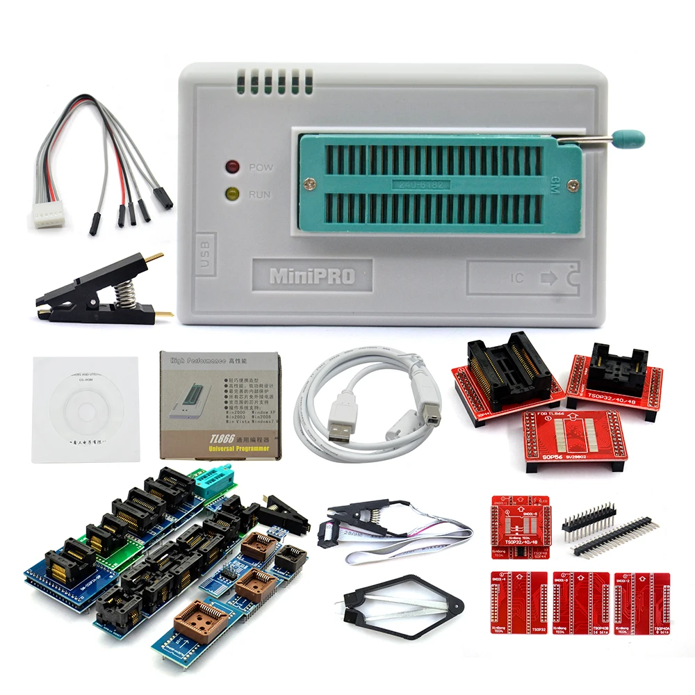 8. suport более 15000 чипов (это обновление номера) многофункциональный: TSOP/32/40/48,TSOP/32/40/48 (с черным адаптером для вентиляции),TSOP40A,TSOP48 toSOP44,SOP56,TSOP32,TSOP40B,SOP44,SOP8 и SOP28. XGecu TL866II плюс USB программатор поддержка 15000 + IC SPI Flash NAND EEPROM 8051 MCU PIC AVR GAL Tl866II Plus программатор улучшение TL866CS/A программатор, разница гораздо выше скорости программирования (до 2x) памяти высокой емкости. Поддерживает режим мультипрограммирования (до четырех). Хорошо разработанный дешевый профессиональный программист, производство высокой плотности SMD технологии, унифицированный пользовательский интерфейс, простой в использовании, полностью функциональный, надежный программный Запуск прикладного программного обеспечения, ультра-маленький код-работает быстрее, поддерживает двуязычный (английский и китайский)