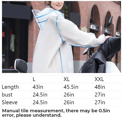 Плащ изготовлен изВодонепроницаемая ткань EVA, которая является водонепроницаемой, здоровой и экологически чистой, легко моется и не имеет специфического запаха.Наденьте воздухопроницаемость, не душно.