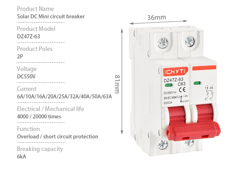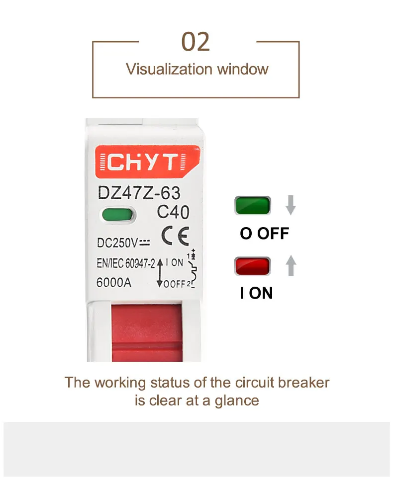 Дополнительные протекторы DZ47Z-63 DC MCB предназначены для обеспечения защиты от перегрузки по току в приборах или электрическом оборудовании, где защита от цепи уже предусмотрена или не требуется. Устройства предназначены для применения цепи управления постоянного тока.