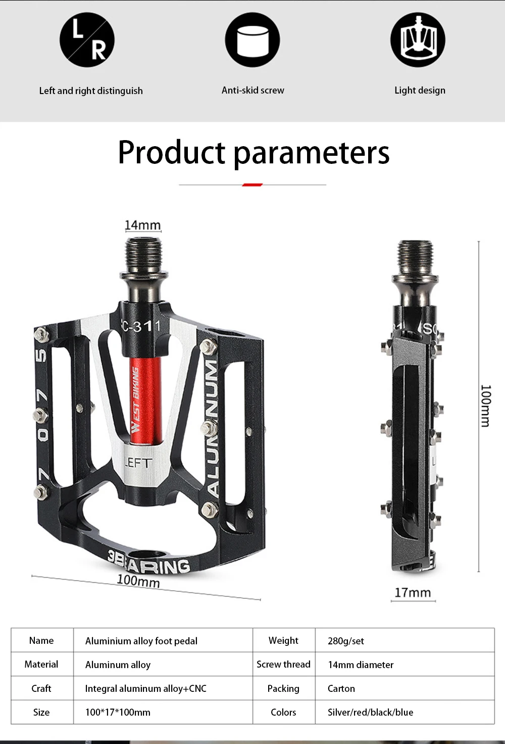 MTB велосипедные педали герметичные 3 подшипника из алюминиевого сплава Легкие педали на платформе аксессуары для велоспорта