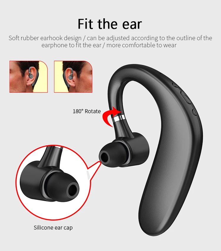3. Сверхлегкий и удобный дизайн, эргономичные вкладыши в форме ушей и петли для ушей обеспечивают комфорт и отсутствие тяжелых ощущений даже после длительного ношения, рукоятка с поворотом на 180 градусов поворачивается за угол и подходит для этой гарнитуры в правом или левом ухе.