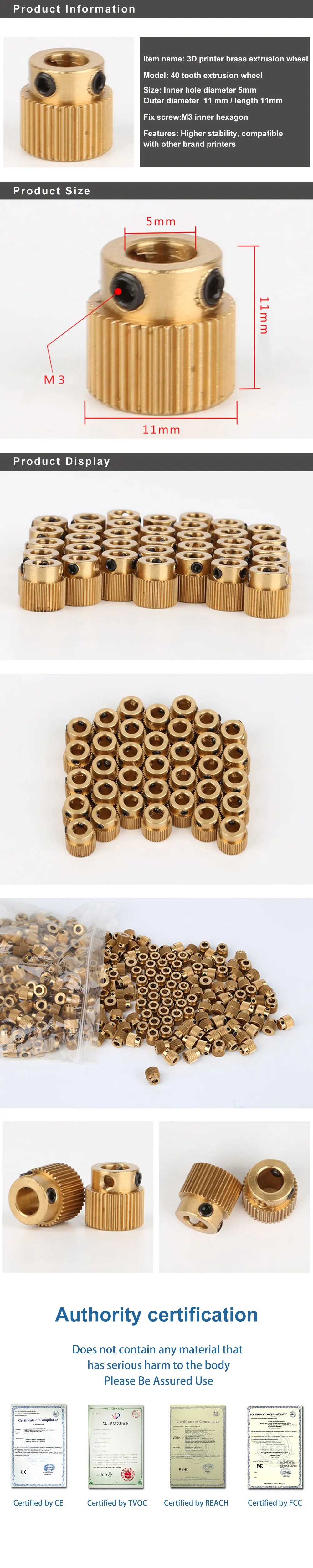 40 зубчатый латунный привод редуктор планета подача на экструдер Шестерня экструзионное колесо Mk7/MK8 для 3D части принтера