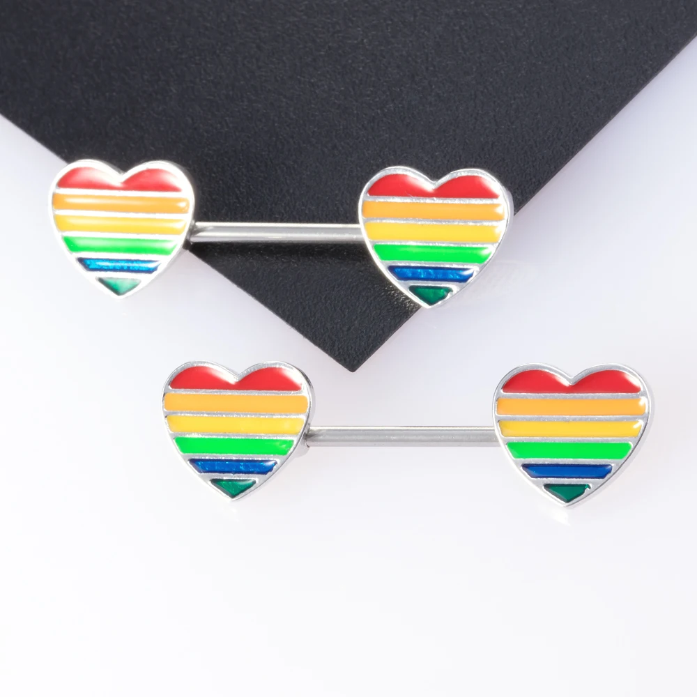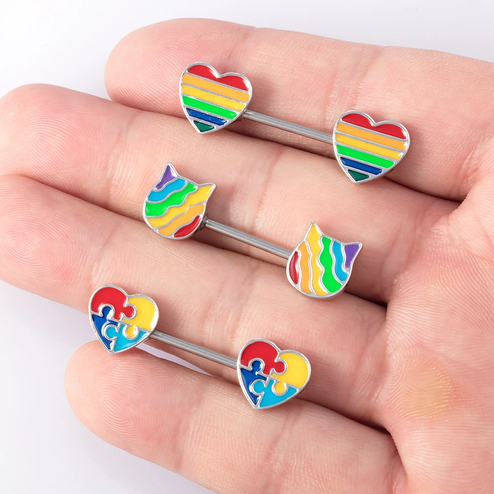 1 пара радужных сосков Щит Сердце Кошка сосков пирсинг кольцо для женщин бар штанга нержавеющая сталь сексуальные соски пирсинг ювелирные изделия