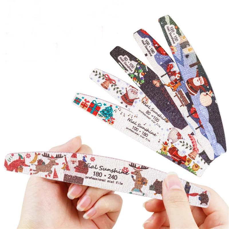 5 шт./лот пилочка для ногтей 80/100/120/180/240 Nail Art Шлифовальные буфера Файлы Рождественский Санта Dsign лак для ногтей красоты профессиональные инструменты