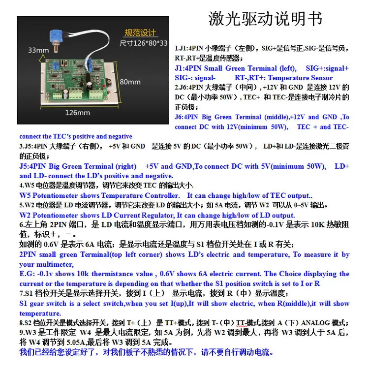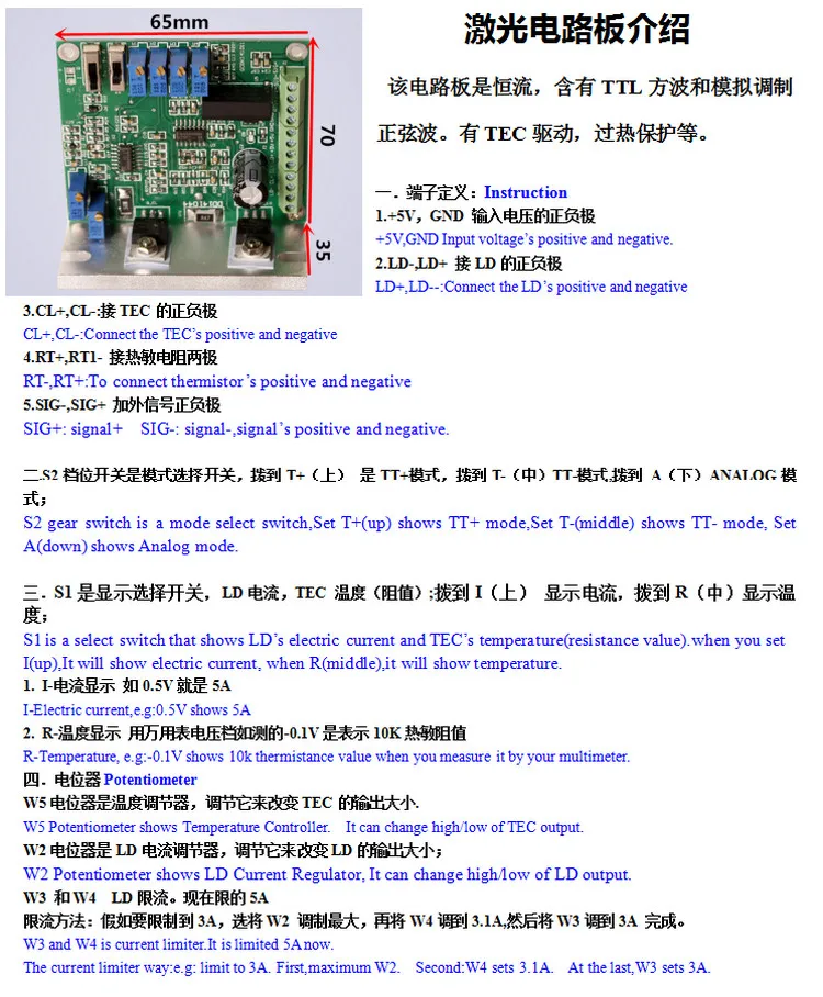LD Laser регулятор диодов-простой в использовании драйвер. Все элементы управления и индикаторы на плате обеспечивают простое управление «plug-and-play».