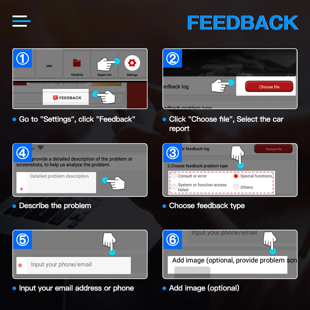Если у вас возникнут какие-либо проблемы с диагностикой, вы можете предоставить отзывы на устройство, и наши инженеры ответят вовремя и помогут вам