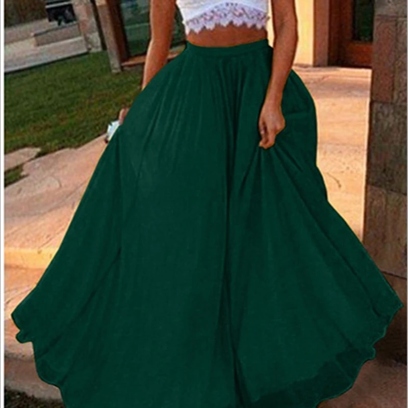 2021 женские шифоновые длинные юбки с эластичной талией, плиссированные трапециевидные макси юбки, Пляжная Бохо Винтажная летняя юбка макси с высокой талией