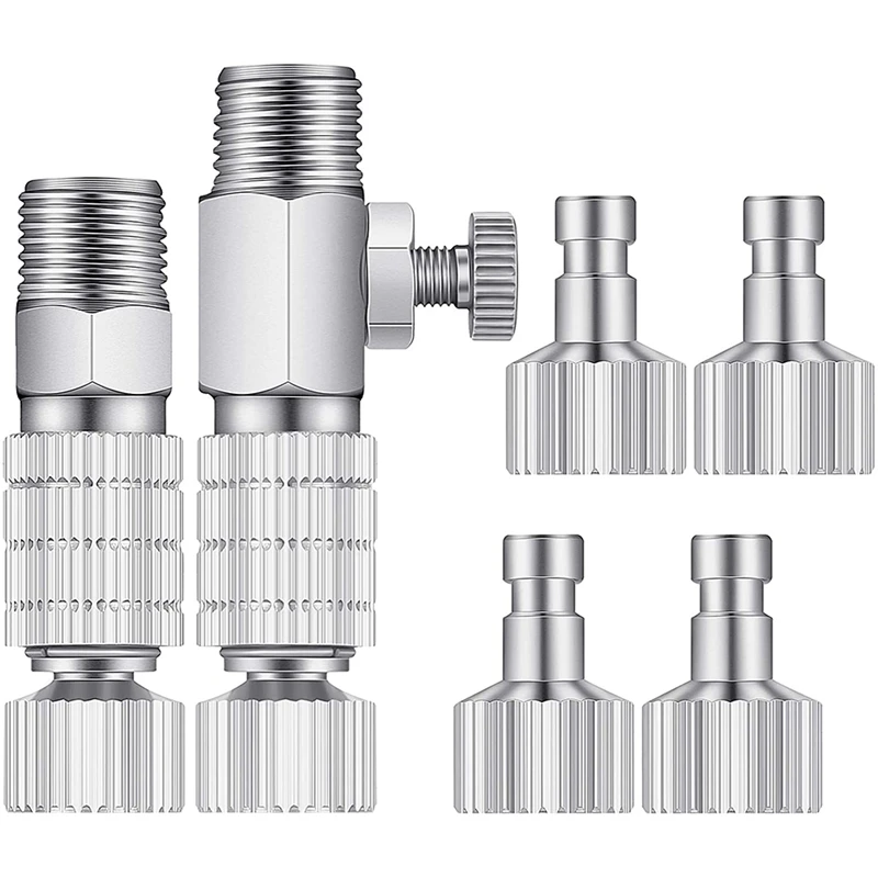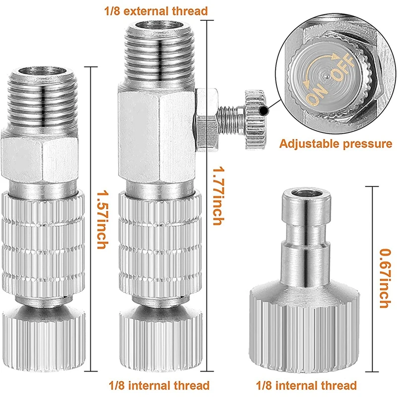 Практическое использование: аксессуар адаптера обладает простым дизайном и металлическим блеском, является красивым металлическим распылителем для подключения воздушного шланга к распылителю; Также легко установить, когда вы используете несколько пульверизаторов, вам не нужно выпускать давление воздуха, и пульверизатор может быть быстро Заменен
