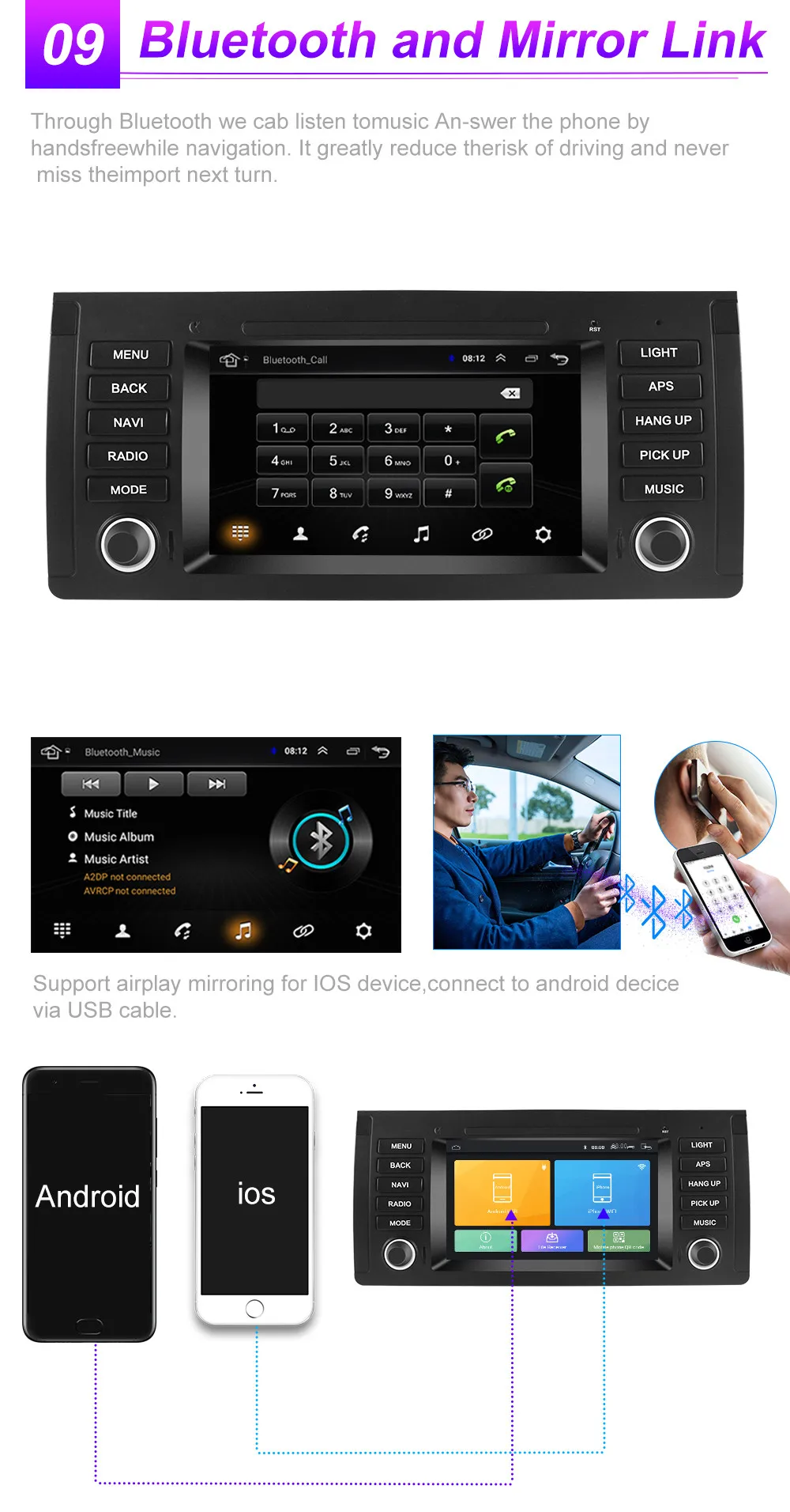Продукт поддерживает кнопки управления рулем, Поддерживает неоригинальные камеры (поддерживает несколько фазовых механизмов), Поддерживает оригинальные функции автомобиля, такие как настройки кондиционера (требуется CANBUS, более оригинальные функции автомобиля связаны с оригинальным автомобилем) Подходит ли для Вашего автомобиля? 1. Проверьте соответствующую модель и год продукта и автомобиля 2. Сравните положение установки продукта с автомобилем, который необходимо обновить 3. Проверьте, подходит ли интерфейс кабеля питания для вашего автомобиля (Примечание: Не все интерфейсы оригинального автомобиля должны быть подключены) 4. Если вы все еще не можете определить, пожалуйста, пришлите нам оригинальное место установки автомобильного радиоприемника (спереди) и оригинальное изображение радиоинтерфейса Поддержка разделенного экрана приложения, позволяет использовать handier, поддерживает более новейшие приложения.