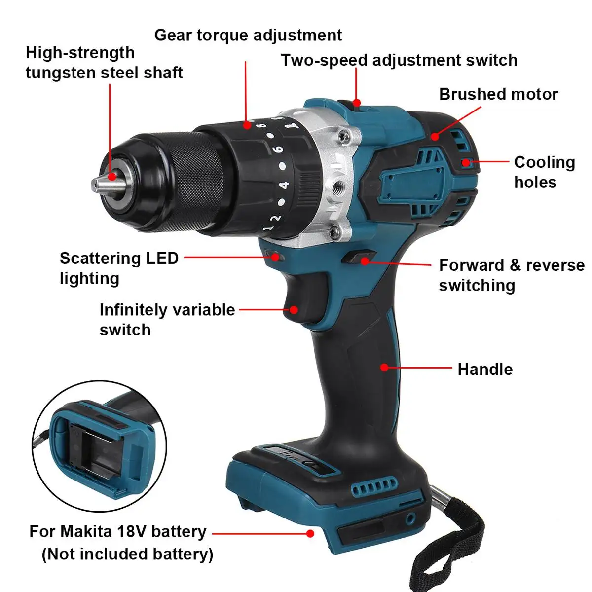 Совместимый аккумулятор: для батареи Makita 18V (не входит в комплект)