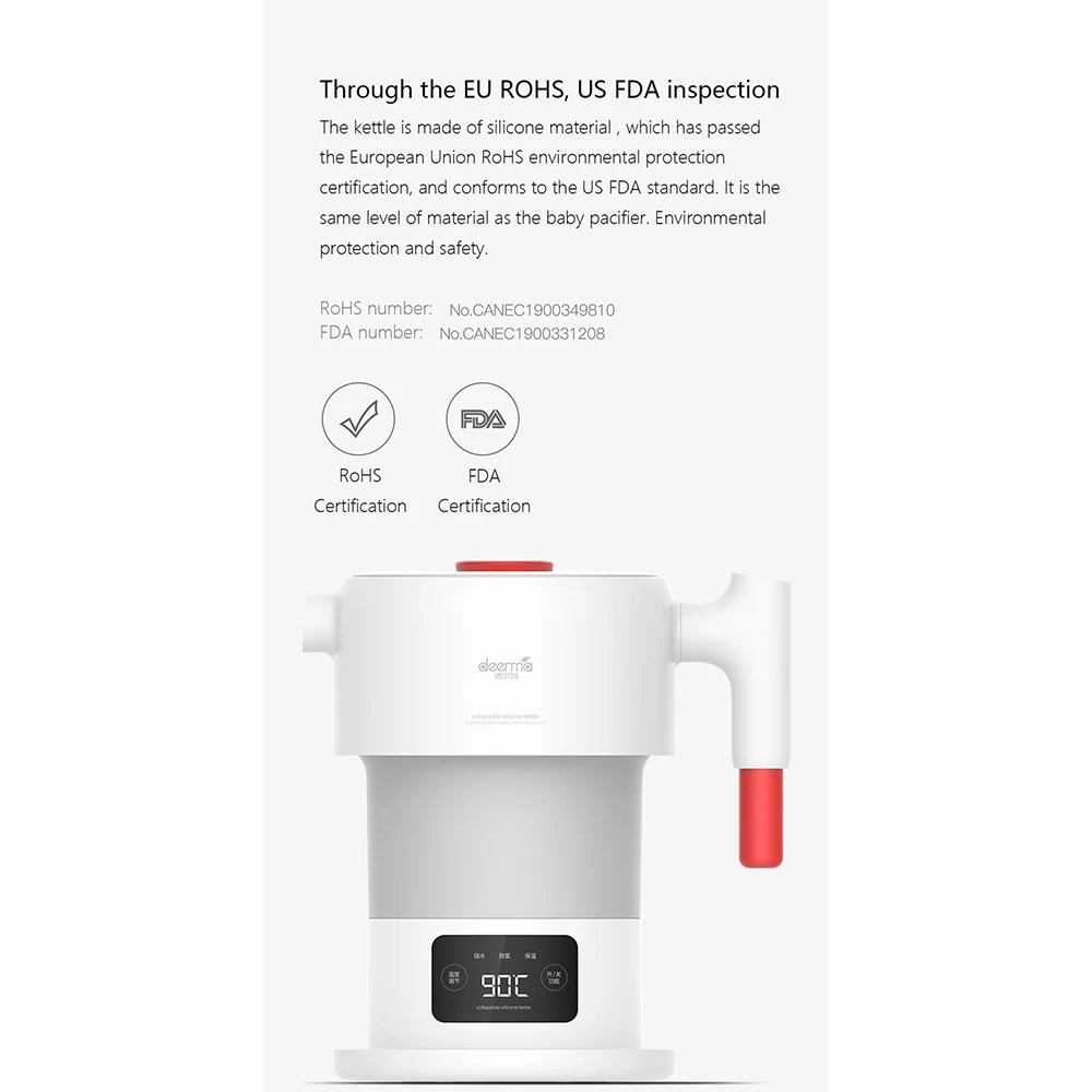 YouPin Deerma складной электрический чайник 0.6л путешествия портативный бутылка для воды Дисплей температуры умный сенсорный контроль изоляционный горшок