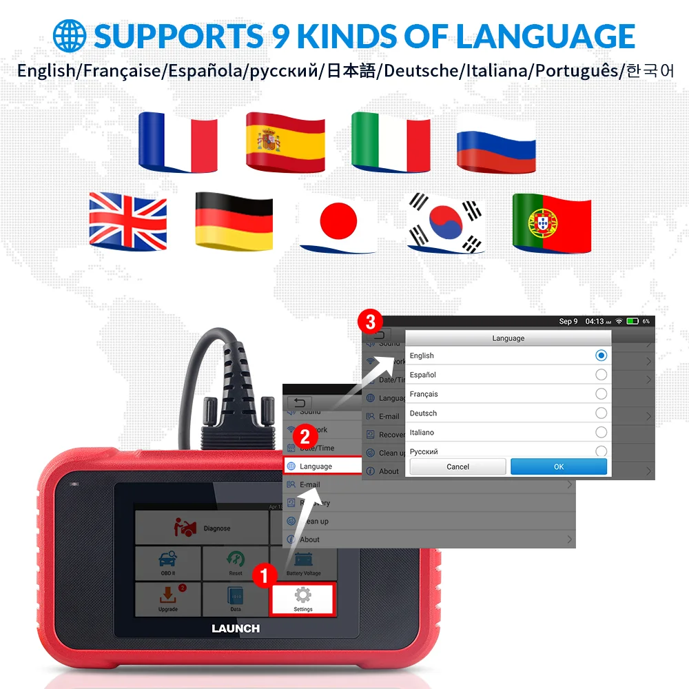 LAUNCH CRP129E Поддержка 9 Languaes