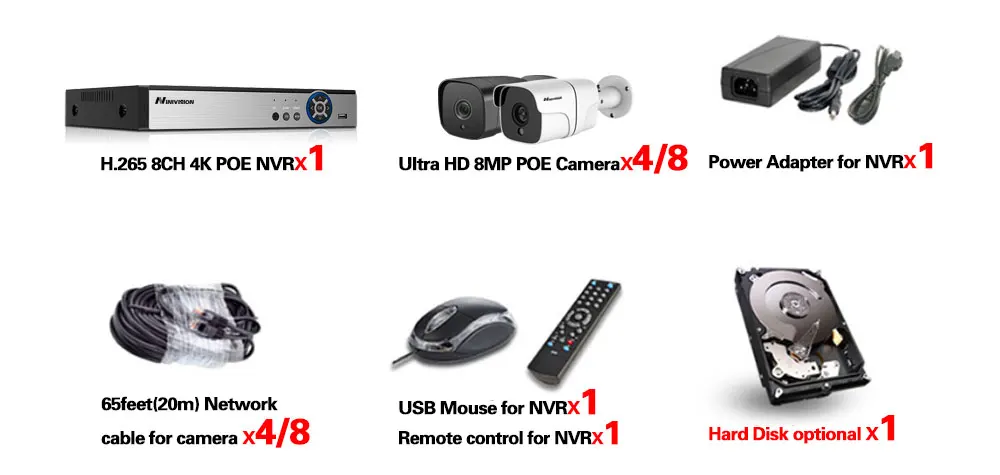 1. Все наши NVR и камеры являются реальными H.265 4K 8MP, NVR может поддерживать 8MP и 4K max, вы можете подключить 720p,1080p,3mp,4mp ,5mp, камеры 8mp & 4k с нашим POE NVR;