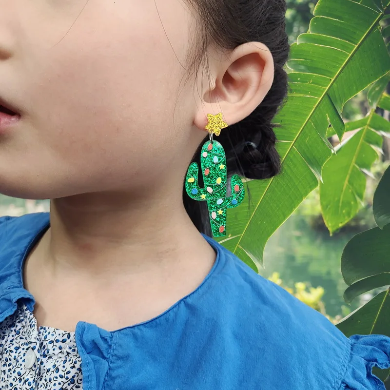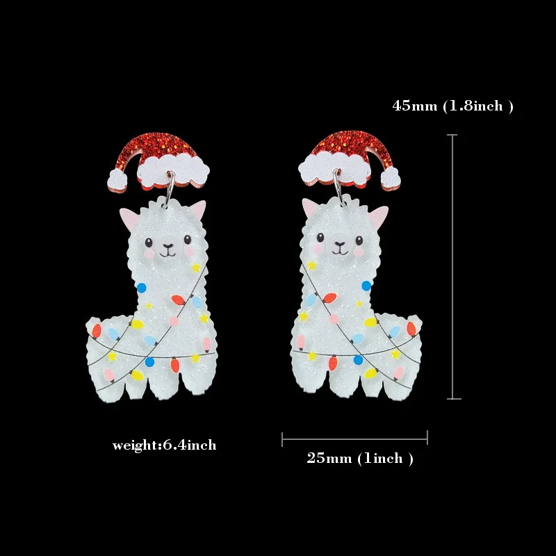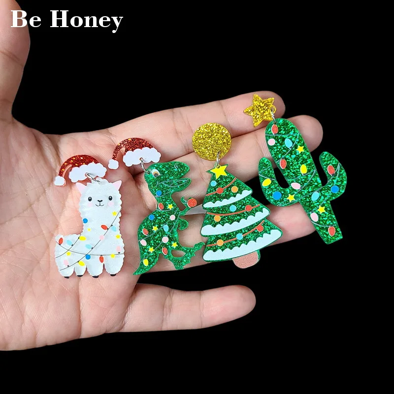Модные рождественские праздничные ювелирные изделия для рождественской вечеринки, блестящие акриловые серьги с изображением ламы, динозавра, дерева, кактуса, животных