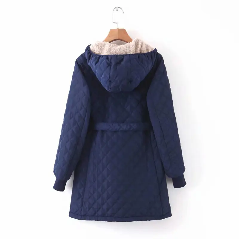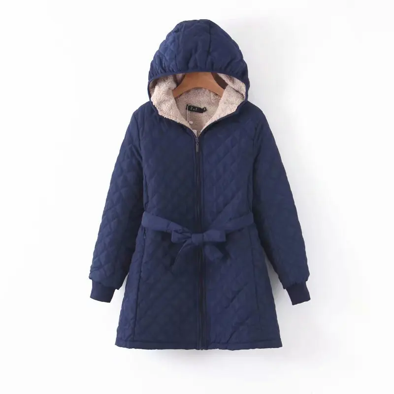 Женское зимнее пальто, новинка 2022, хлопковые парки с капюшоном, на шнуровке, клетчатая Вельветовая длинная куртка с отворотами, теплое Женское пальто