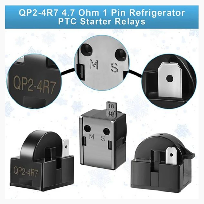 2: пусковое реле PTC: стартер PTC реле является универсальным реле стартера, применяется в различных марок мини-холодильников и охладителей; Однако, наш стартер для холодильника совместим только с QP2-4R7 односторонними реле, пожалуйста, подумайте перед покупкой