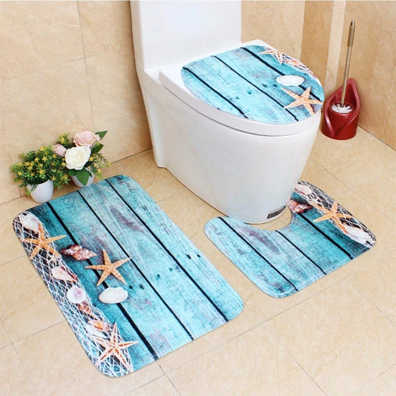 Материал: Фланель + губка + ПВХ Противоскользящее основание. Примечание: возможно, этот набор ковриков для ванной не такой толстый, как вы ожидали, но он очень мягкий и удобный для использования.