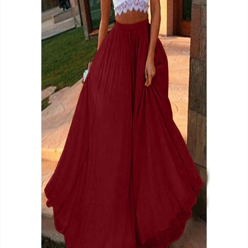 2021 женские шифоновые длинные юбки с эластичной талией, плиссированные трапециевидные макси юбки, Пляжная Бохо Винтажная летняя юбка макси с высокой талией