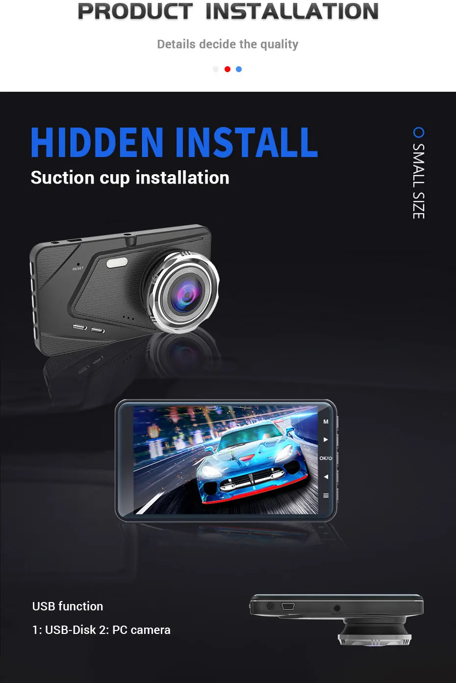 Характеристики: g-сенсор, обнаружение движения, циклическая запись, отображение времени и даты, микрофон, светодиодный дисплей