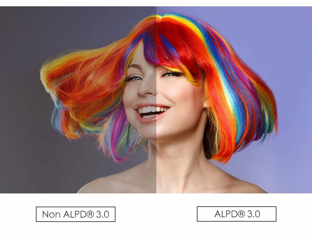 С помощью технологии Guangfeng ALPD 3,0 лазерный флуоресцентный дисплей технология, персонажи и естественные цвета более Vivid. Соответствует стандарту цветовой гаммы Rec.709 *, а цветопередача более Реалистична.