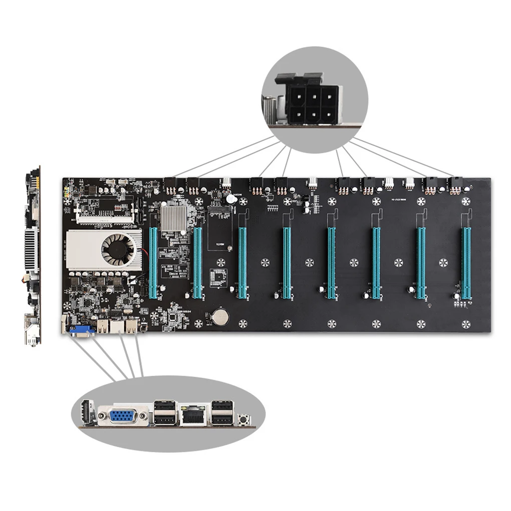 Расширяемый порт: 8 x PCIE 16X,8x6PIN PCIE X16 разъем питания, HDMI-совместимый + VGA