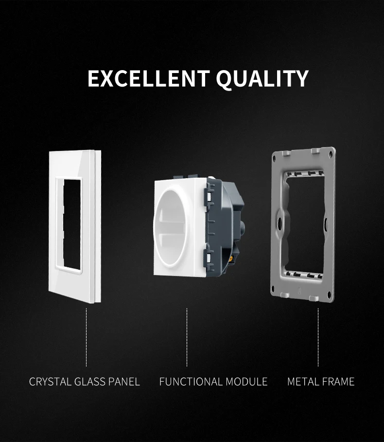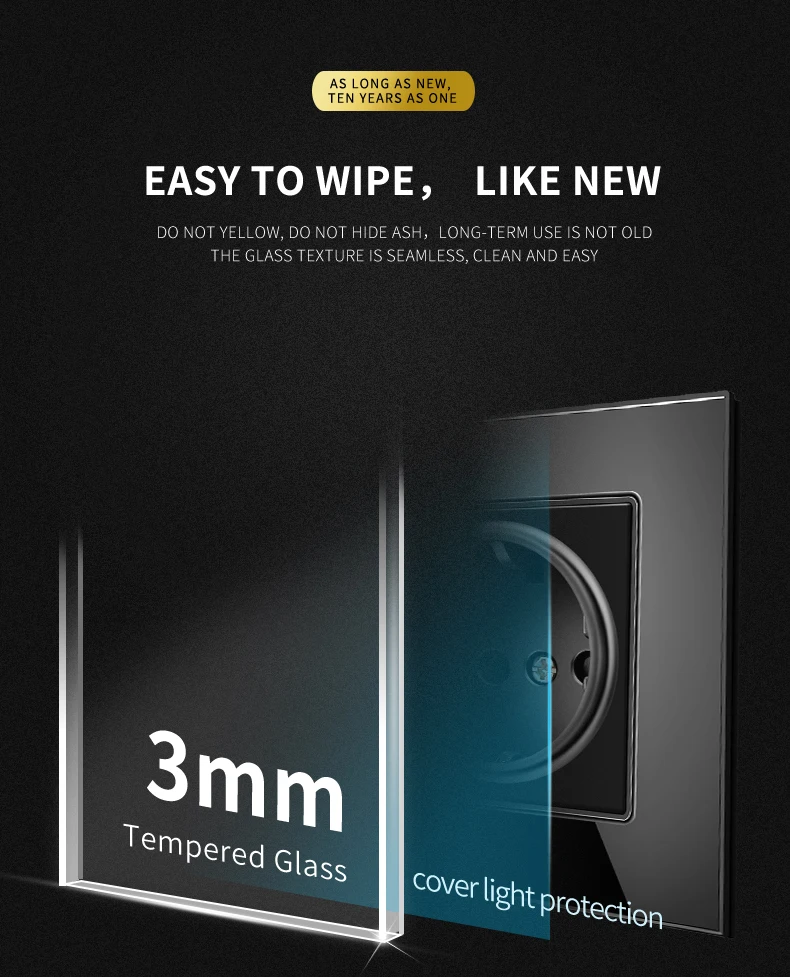 1. Качество гарантировано сертификатами CE, RoHS и China CCC 2. 100% абсолютно новая и высококачественная панель настенного гнезда. 3. Стандарт воспламеняемости: V-0 4. Розетка европейского стандарта подходит для штепсельной вилки ЕС или Германии. 5. Этот продукт должен быть установлен профессиональным электриком