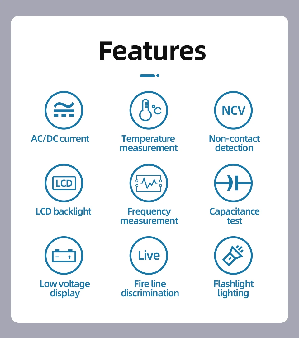 ● Ультра-Портативные Инструменты для продвинутых электриков. Постоянный ток переменного тока может быть протестирован быстро, точно и безопасно, не повреждая изоляцию на поверхности линии.