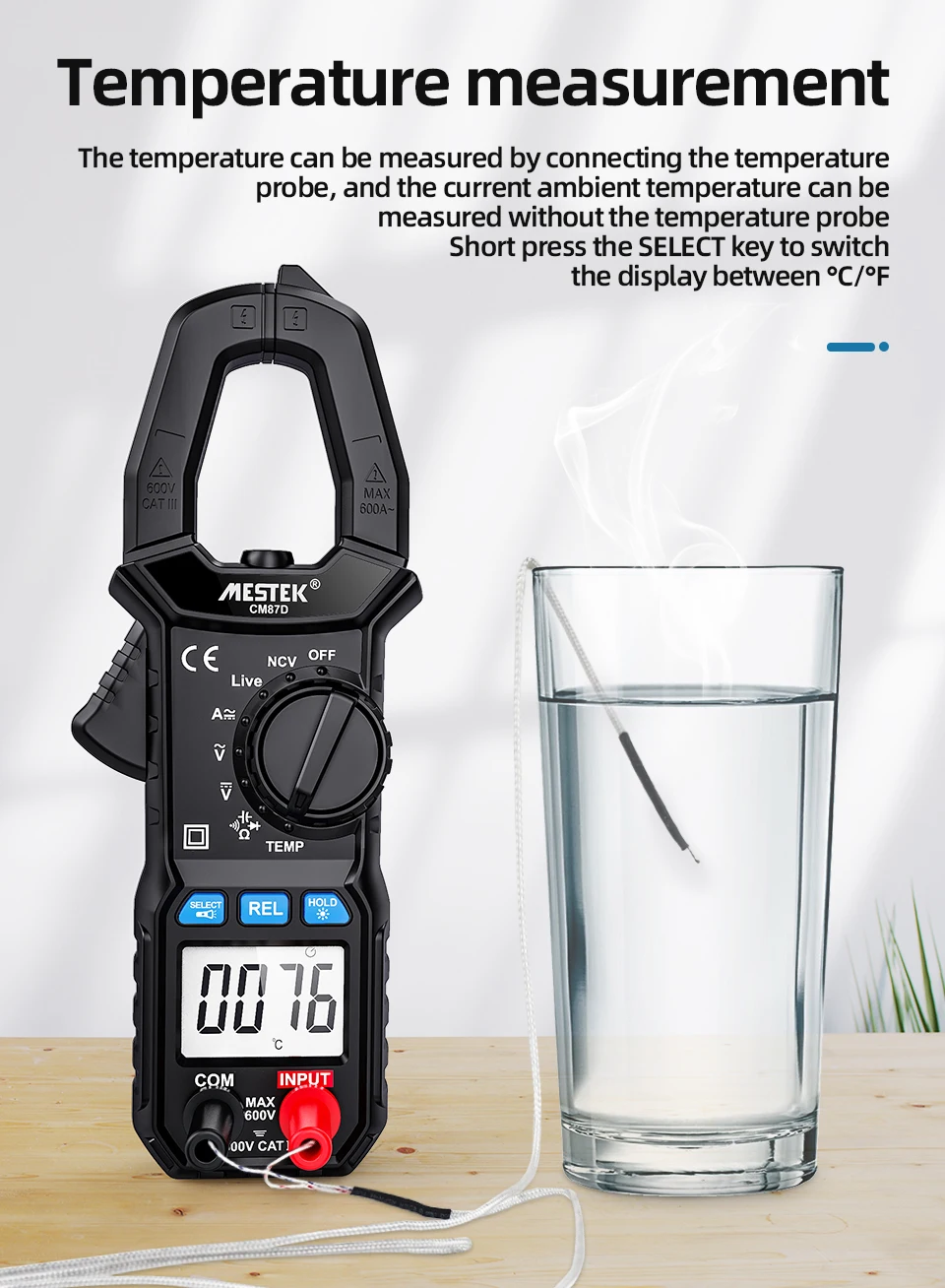 ● Максимальный дисплей: 6000 шт. По сравнению с аналогичными товарами, CM87D по-прежнему имеет высокую точность для большего диапазона измерений (0 ~ 600A).