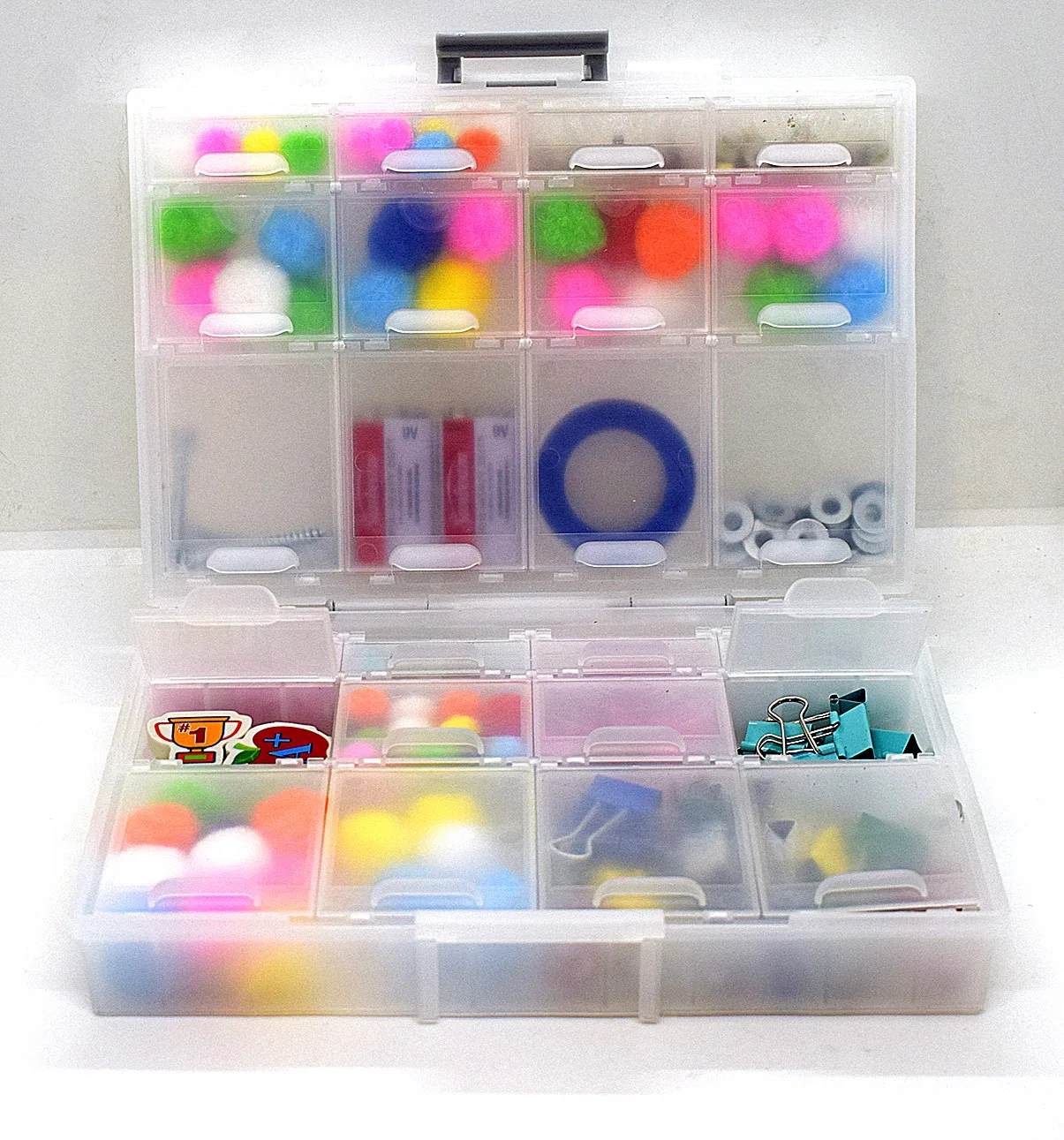 * Размеры отсеков: 24 небольших отсеков размером 0,78 "(Д) х 1,37" (Ш) х 0,78 "(Д) или 18 мм (Д) х 35 мм (Ш) x 20 мм (d), вмещает до 500