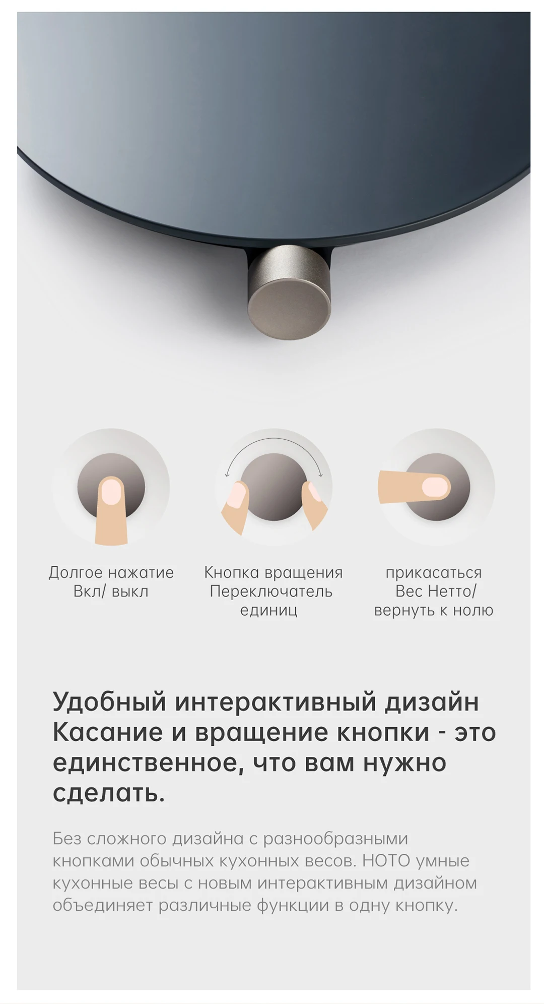 HOTO Smart Kitchen Scale разработала новый интерактивный дизайн, который сочетает различные функции в одной кнопке.