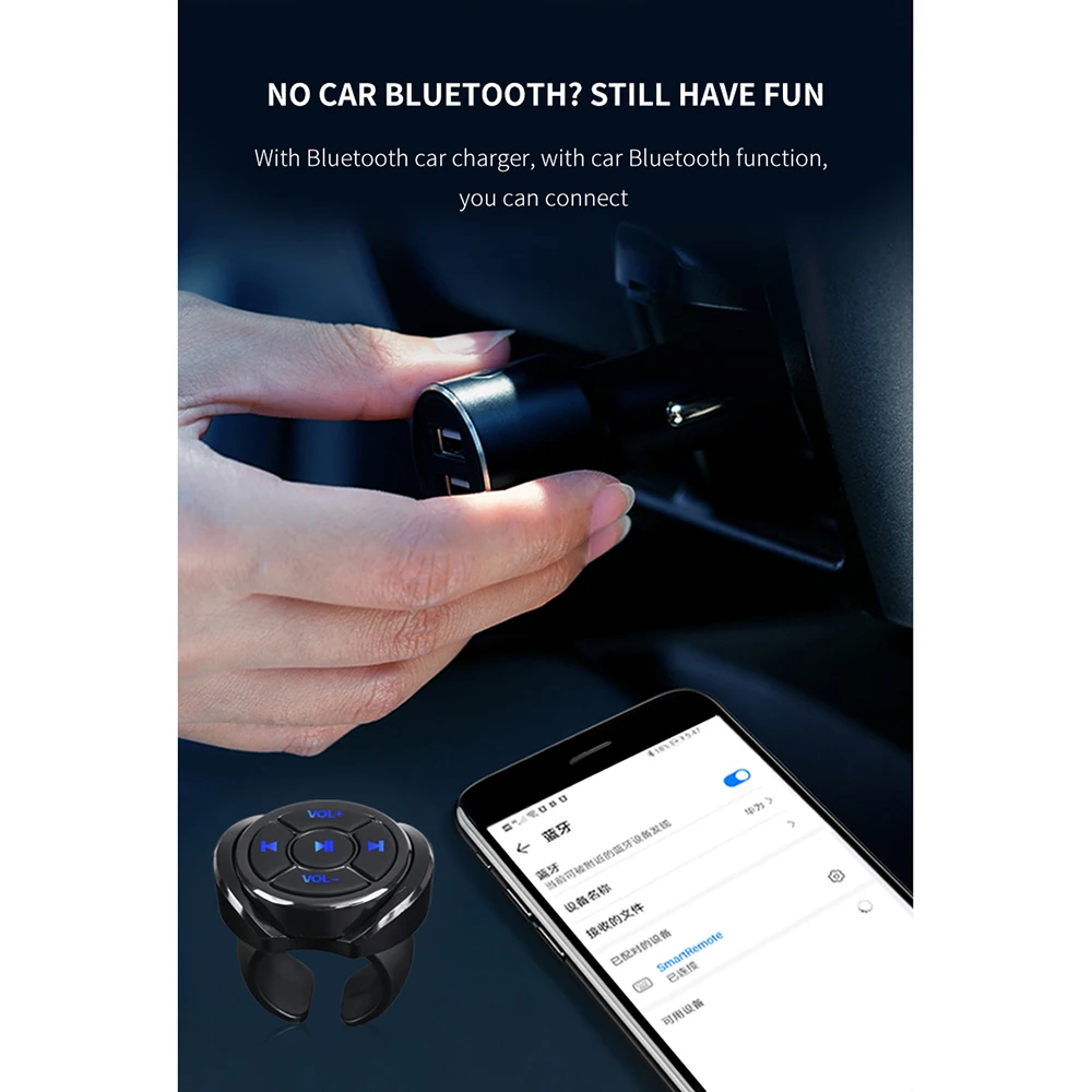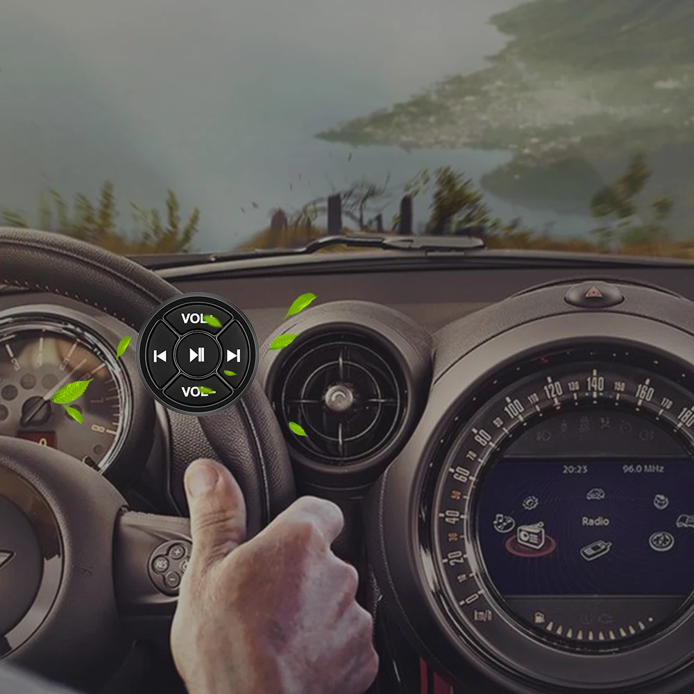 Easy to use, small and compact, the Bluetooth wireless range can reach 10 meters. CR2025 battery has a service life of at least 1 year. With the base, it is convenient to fix on the steering wheel.