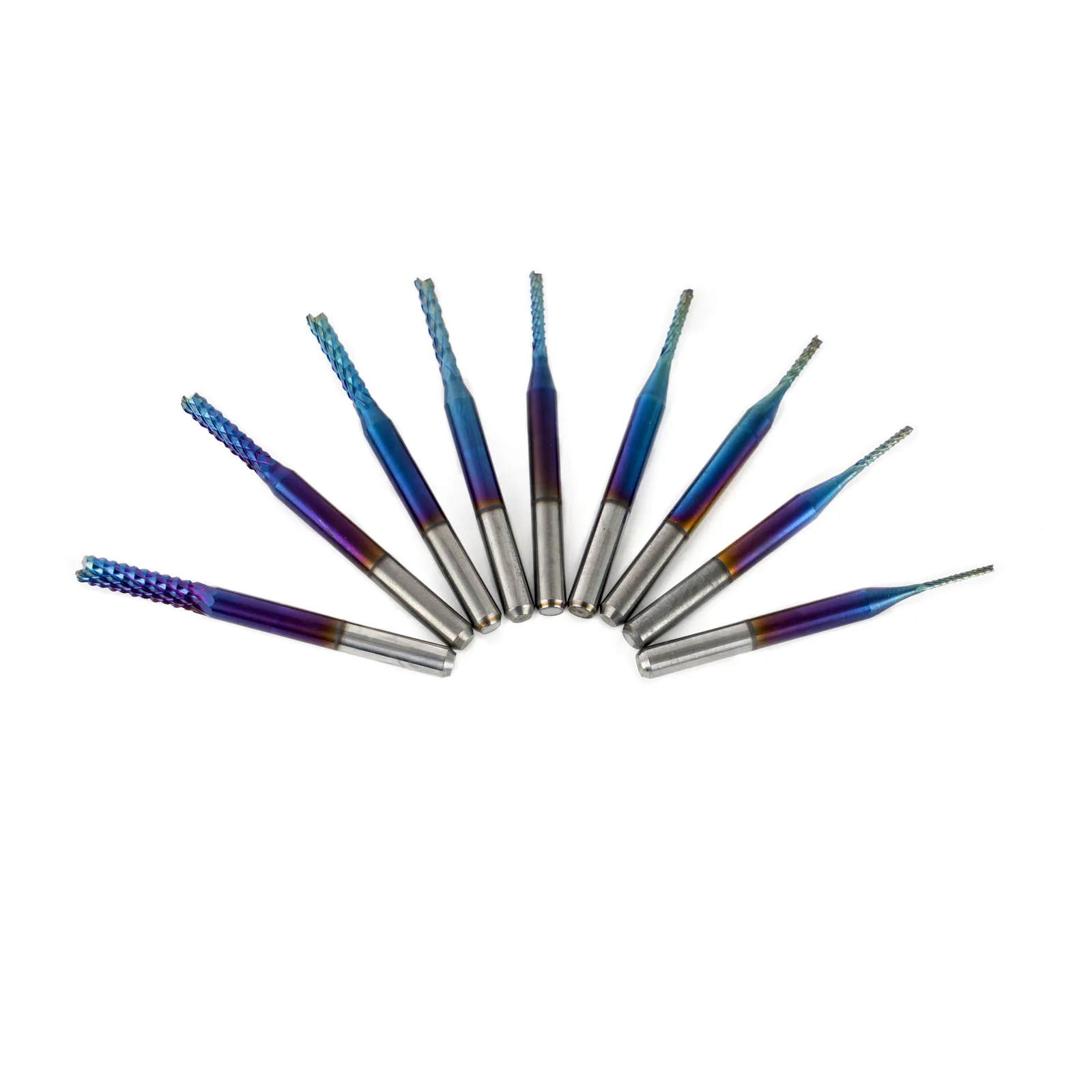 DZQ 10 шт. синий градиент твердосплавные сверла с Титан пальто режущей кромки Диаметр 0,8-3 мм 1/8 "хвостовик работает с PCB, SMT, ЧПУ, пресс-формы, Пластик волокна