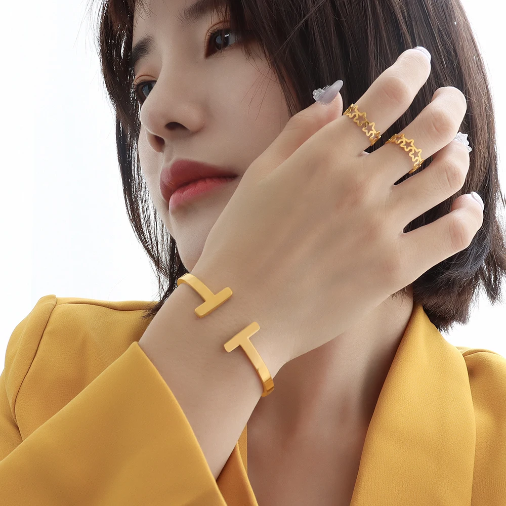 Ins манжета браслет регулируемый для женщин и мужчин модный OL стиль золотой цвет нержавеющая сталь открытый браслеты украшения подарки