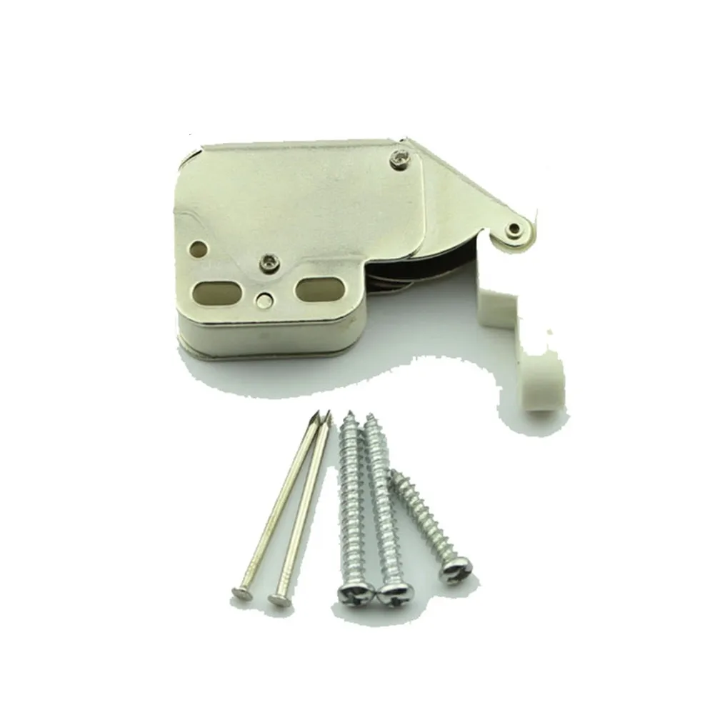 Дверь автоматически открывается, просто надавливая на саму дверь, тем самым активируя отпускную пружину в фитинге.