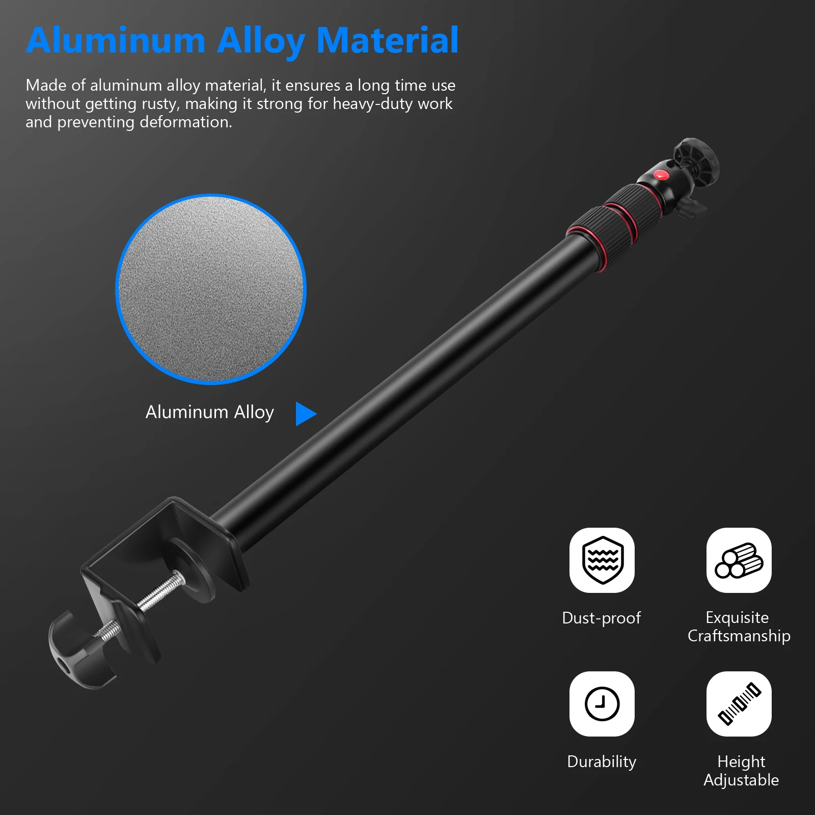 Изготовлен из алюминиевого сплава, подставка является прочной и достаточно стабильной, чтобы поддерживать ваше осветительное оборудование.